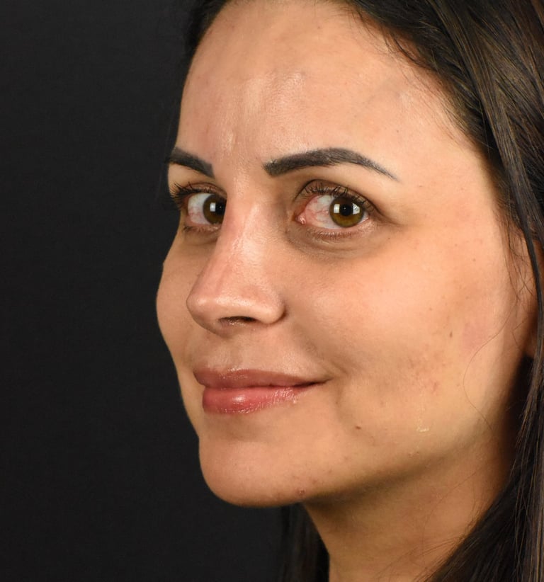 estrategicamente posicionadas para criar o "efeito de maquiagem natural" e realçar a beleza e elegância do nariz